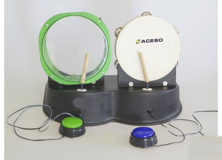 Барабаны Бонго – это электро-механическое устройство с подвижными частями. Основное предназначение - занятия с детьми, позволяющие развивать слухоречевой аппарат и чувство звукового такта. Состоит из основы, закрепленными на ней двумя барабанами с бубном, вращающимися барабанными палочками, кнопки активации электромотора, а также разъем 3,5мм. (2шт. - для каждого из барабанов отдельный) для подключения дополнительного девайса. На нижней части имеется батарейный отсек для четырех элементов питания. Барабаны можно активировать при помощи дистанционной подключаемой кнопки через разъем 3.5мм. Занятия можно проводить как с одним ребенком, так и с группой детей под руководством педагога.