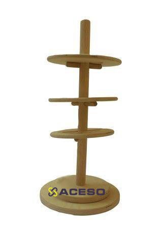 Тренажер представляет собой деревянную конструкцию, состоящую из круглого основания, на котором вертикально располагается «ствол» - деревянный стержень с тремя горизонтальными перекладинами, расположенными под разными углами относительно центра окружности. Тренажер комплектуется 3 кругами разного диаметра из натурального дерева с отверстиями–пазами для упражнений «надевания» на вертикальный ствол.
