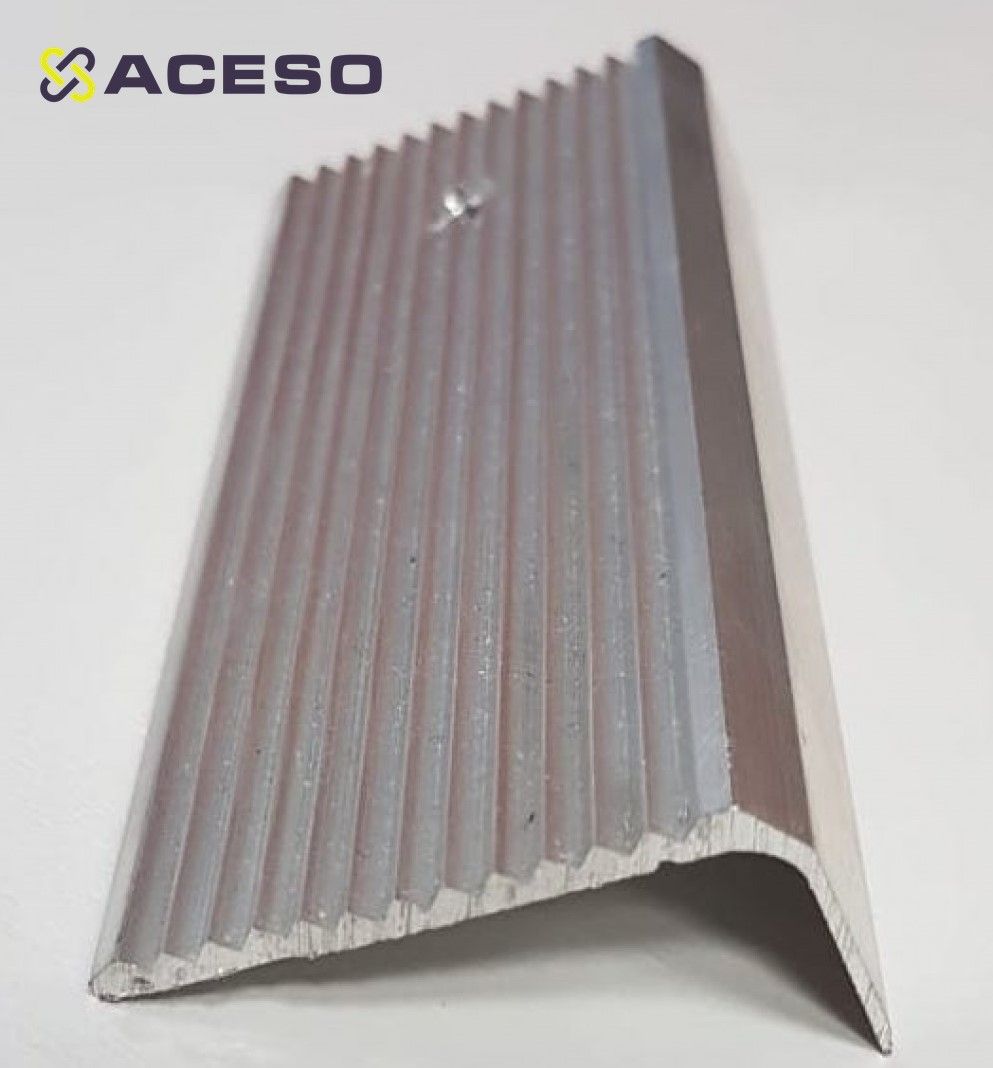 Алюминиевый угловой порог противоскользящий с рифлением, представляет собой профиль, предназначенный для установки на границе напольных покрытий, имеющих угловой стык. Профиль имеет гладкую угловую форму, габаритные размеры составляют 44мм*23мм. укрепляют угловые соединения, предохраняют их от различных механических повреждений (истирания, сколов, ударных нагрузок и пр.);