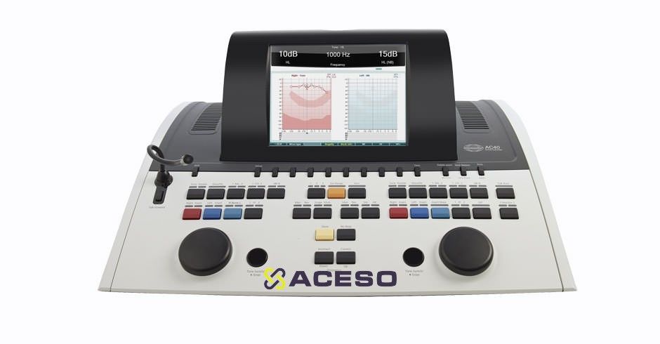 Клинический Аудиометр AC 40 - это полнофункциональный, 2-канальный клинический аудиометр с тестированием воздушной, костной проводимости, речи и встроенным полевым усилителем.