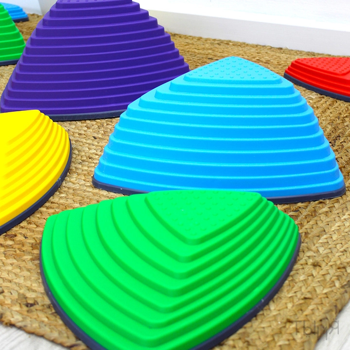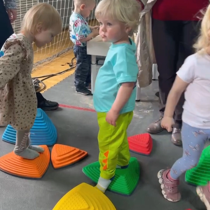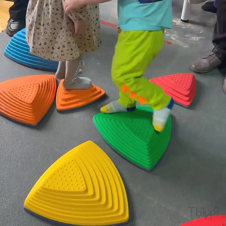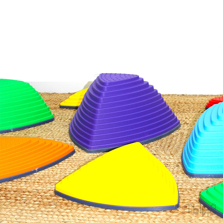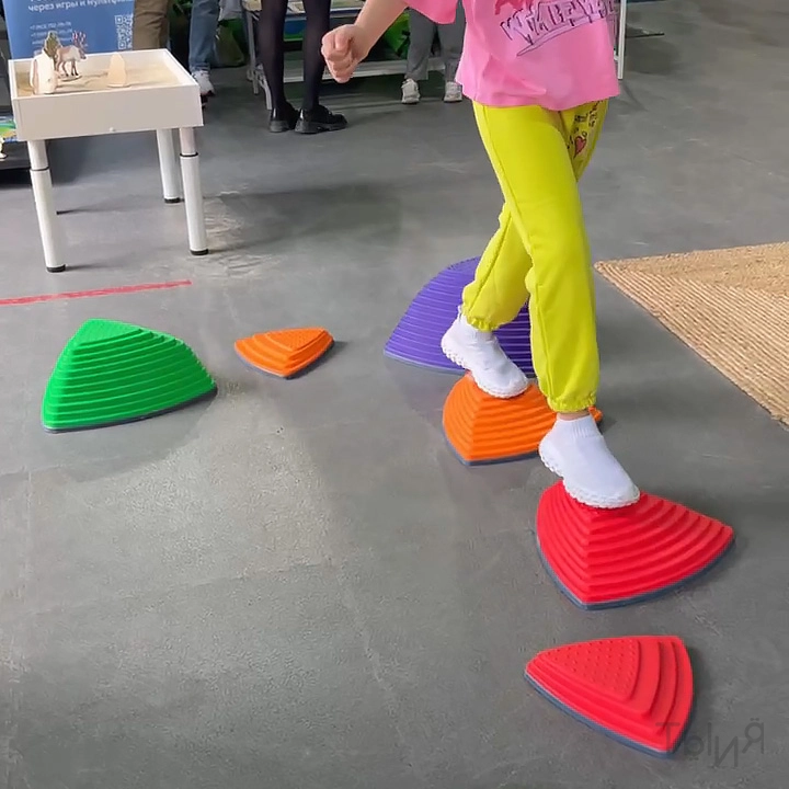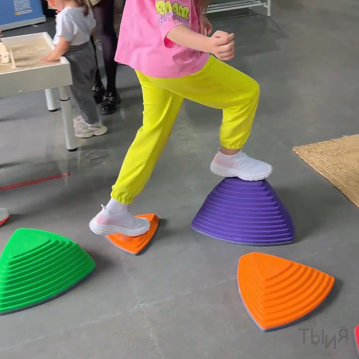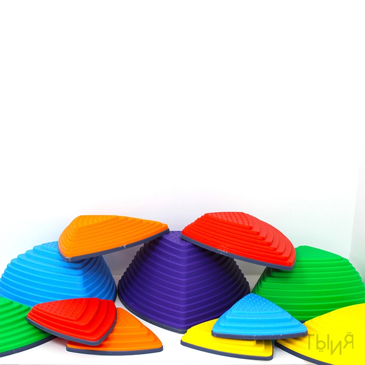 - Комплект модульных элементов разной высоты для развития координации, баланса и моторики. Изготовлен из прочного пластика с противоскользящим основанием — безопасен для использования в детских пространствах.