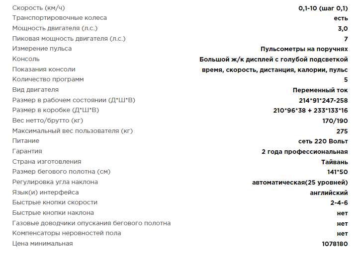 Неоспоримым преимуществом тренажера является стартовая скорость 0,1 км/ч и максимальная скорость 10 км/ч. Шаг изменения скорости 0,1 км/ ч.