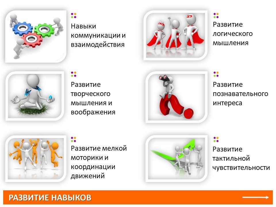 увеличивают объем активных движений и формируют навыки и умения манипулирования предметами.