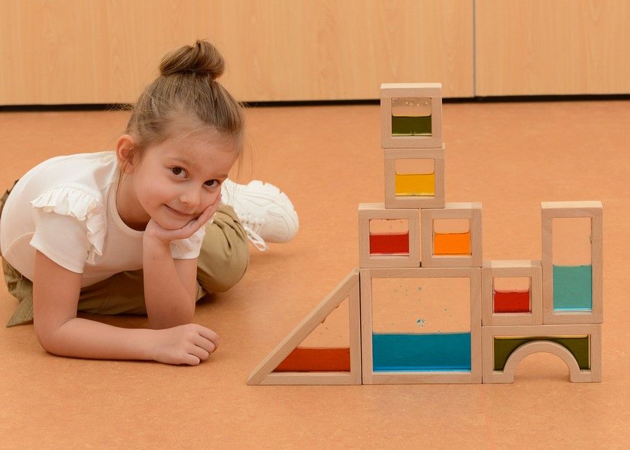 Откройте для ребенка мир удивительных визуальных эффектов с набором "Деревянные сенсорные блоки с жидкостью"! Этот комплект из 18 деревянных блоков с прозрачными акриловыми вставками, наполненными разноцветной жидкостью, станет источником бесконечных открытий. Дети смогут наблюдать за завораживающим движением жидкости при каждом переворачивании, преображая мир вокруг, смотря через цветные грани. Сочетание двух блоков откроет новые оттенки, а разнообразные геометрические формы (квадраты, треугольники, прямоугольники, полукруги, арки) вдохновят на создание уникальных конструкций. Жидкость представлена в шести ярких цветах: красном, синем, зеленом, желтом, оранжевом и фиолетовом. Этот набор прекрасно дополняется световой панелью, усиливая визуальное восприятие. Идеально подходит для развития мелкой моторики, цветовосприятия и пространственного мышления.