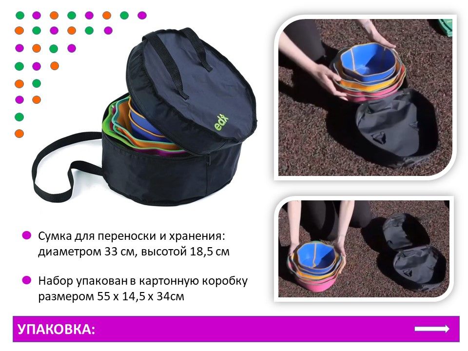 Сумка для переноски и хранения: диаметр 33 см, высота 18,5 см.