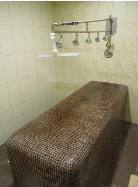 Душ Виши мод 3 (Стандартная комплектация: кушетка, стрела с 5 форсунками (крепеж к стене), настенная панель управления с кранами включения форсунок и душа, подушка и матрац из влагонепроницаемого материала).