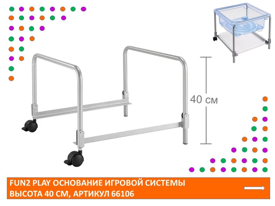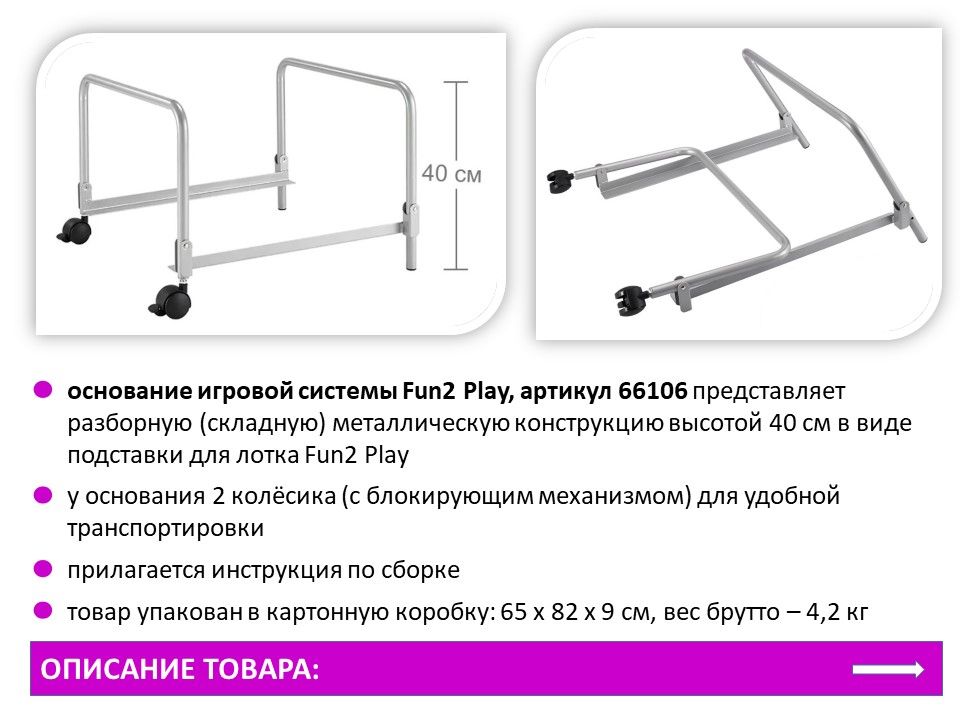 Металлическое основание высотой 40 см для игровой системы Fun2 Play. Обеспечивает устойчивость и удобство использования. Оснащено двумя металлическими колесами с блокировкой для легкой транспортировки. Конструкция разборная, поставляется с инструкцией по сборке.
