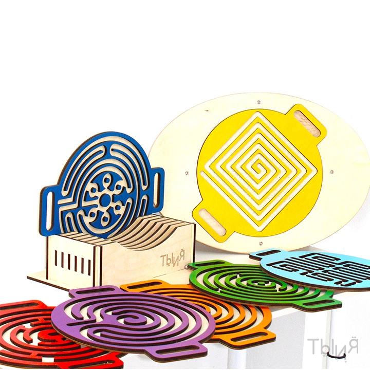 7.5 «Путаница» (Лабиринт на шею)Двое игроков надевают устройство на плечи и проводят шарик по лабиринту движениями корпуса. Кто быстрее пройдет — тот победил.