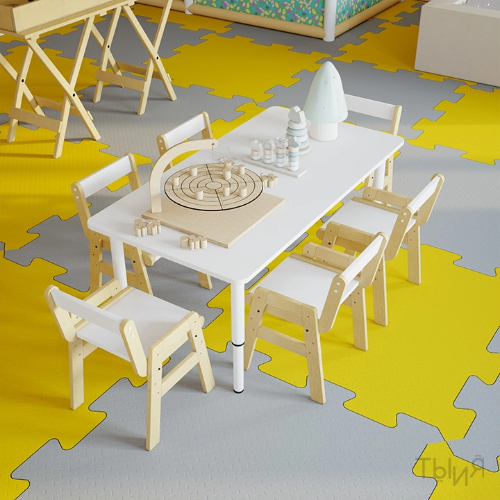2. Регулируемый стол и 4 стула «Чиполлино» – удобные места для рисования, лепки, настольных игр и чтения