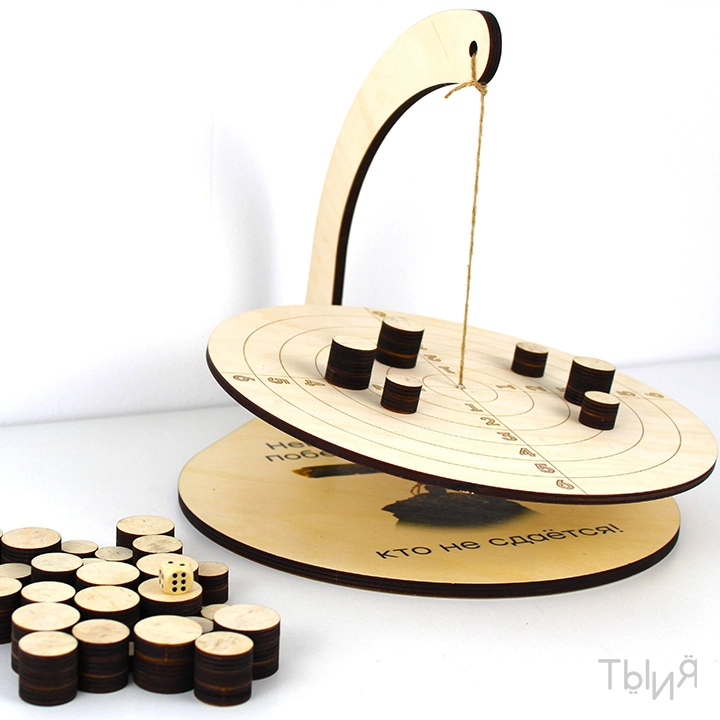 Игра на развитие координации, внимания и стратегического мышления. Участники по очереди размещают брусочки на подвижной доске, стремясь набрать больше очков и не нарушить равновесие.