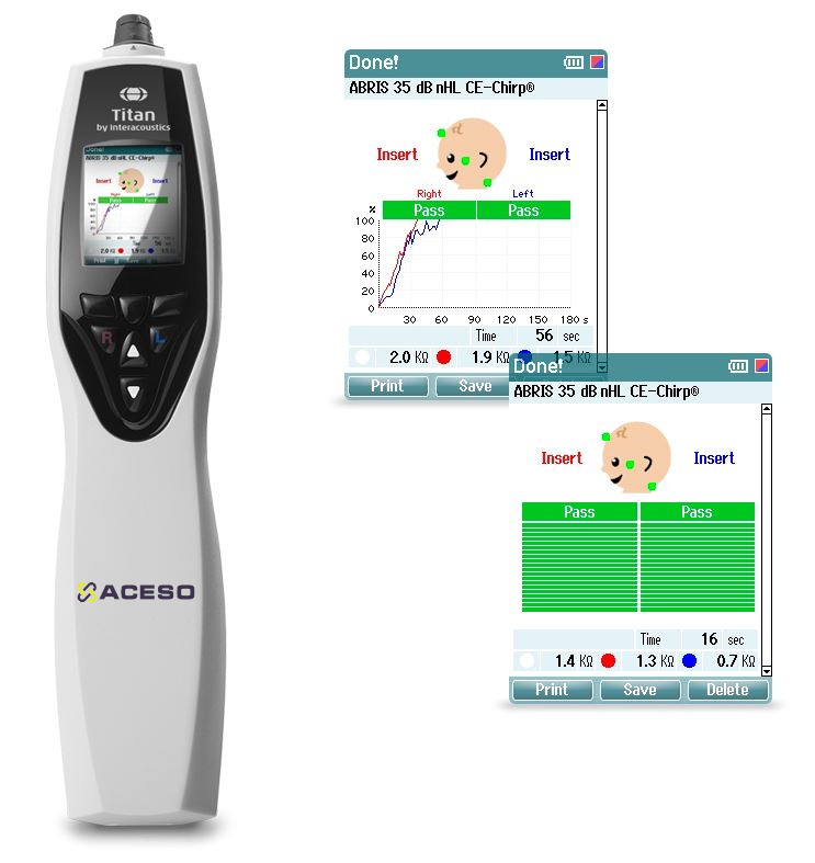 Аудиометр импедансный Titan в зависимости от установленных программных модулей используют для регистрации слуховых вызванных потенциалов (СВП), отоакустической эмиссии (OAE), импедансометрии и широкополосной тимпанометрии (WBT).