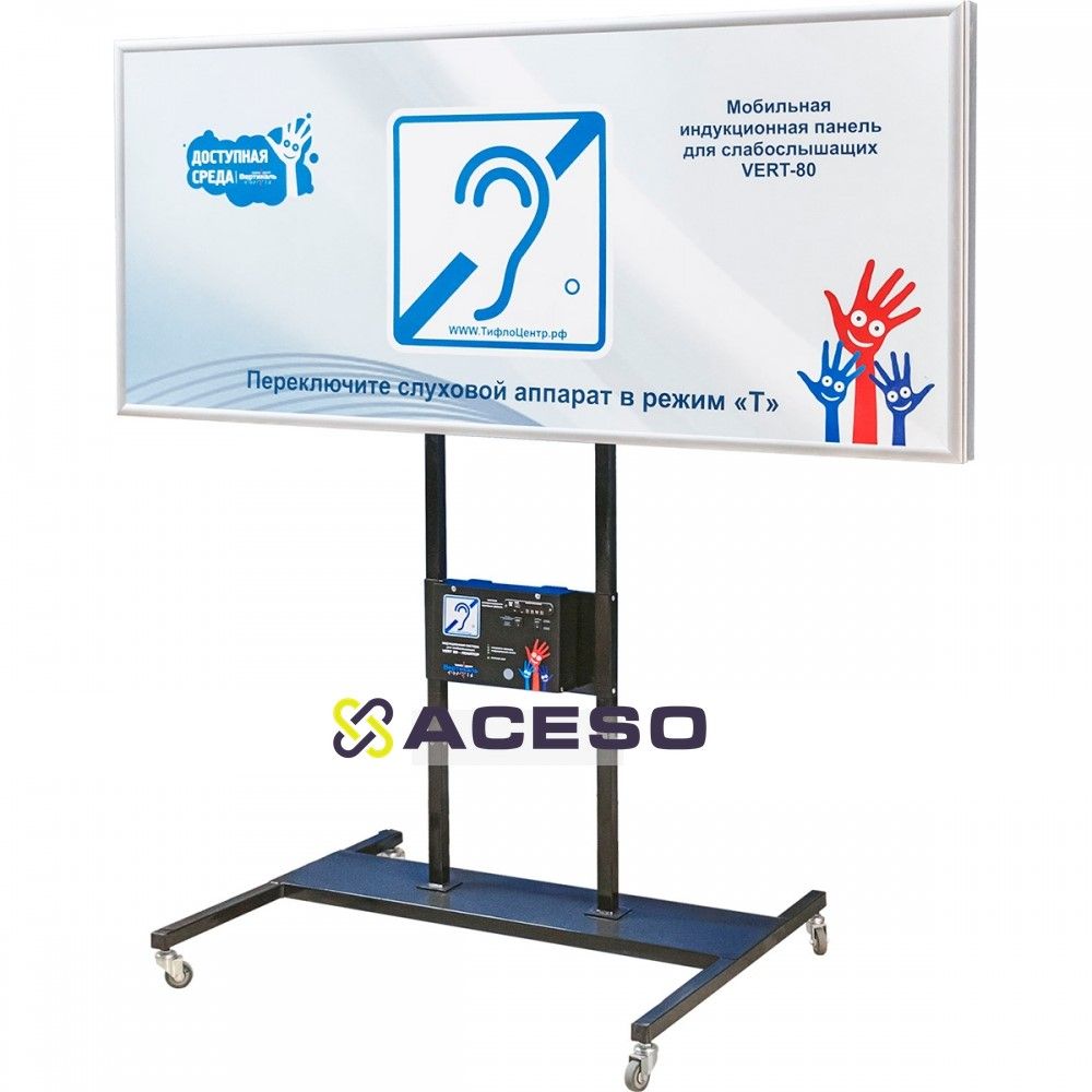 Мобильная информационная индукционная система для слабослышащих Vert-80 «Локатор» предназначена для усиления восприятия информации людьми с нарушениями слуха (использующие слуховые аппараты) в ограниченном пространстве, при скоплении людей, а также при наличии посторонних звуков или преграды между собеседниками. По сравнению с VERT-50 данная система имеет большую мощность, поэтому она рекомендована к использованию в больших залах и длинных коридорах. Система монтируется на дополнительной стойке, благодаря которой ее можно адаптировать в любом конференц-зале и классе, а также совместно с системами визуально-звукового оповещения.