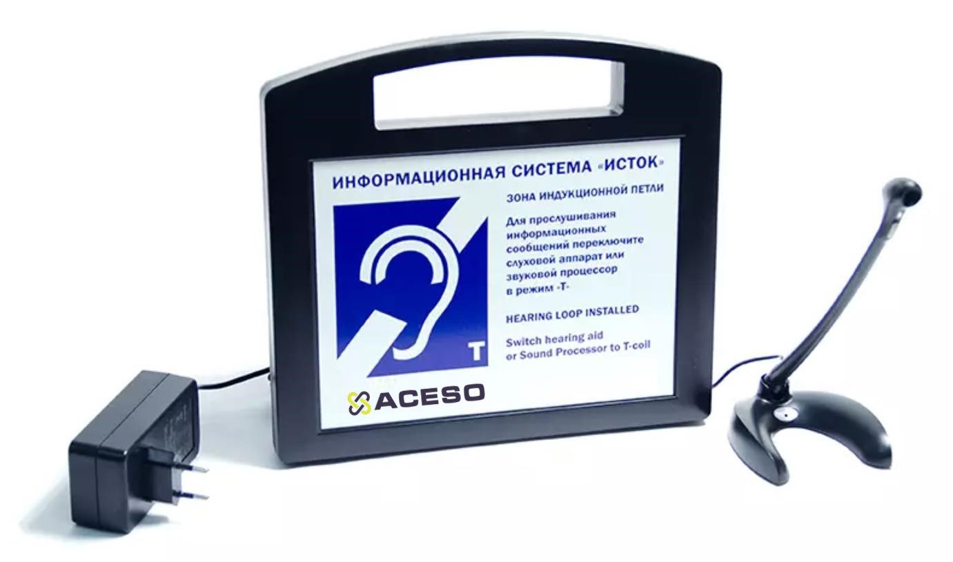 Информационная индукционная система для слабослышащих портативная «ИСТОК» А2 со встроенным плеером - звуковым информатором - предназначена для передачи аудиоинформации лицам с нарушенной функцией слуха, пользующимися слуховыми аппаратами в режиме индукционной катушки «Т» при повышенном уровне окружающего шума или при наличии преграды между собеседниками в общественных местах, в зонах обслуживания населения (возле стоек информации, кассах). Обеспечивает зону уверенного приема сигнала от 0,5 до 2 метров.
