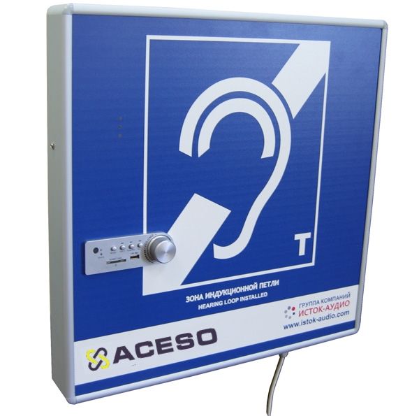 Настенная информационная индукционная система со встроенным плеером - звуковым информатором - предназначена для беспроводной передачи аудиоинформации в слуховой аппарат с телефонной катушкой (в режиме «Т») с помощью электромагнитной индукции (индукционная петля). Применяется в местах с повышенным уровнем фонового шума и реверберации. Размещается на любых немагнитных вертикальных поверхностях или информационных стойках.