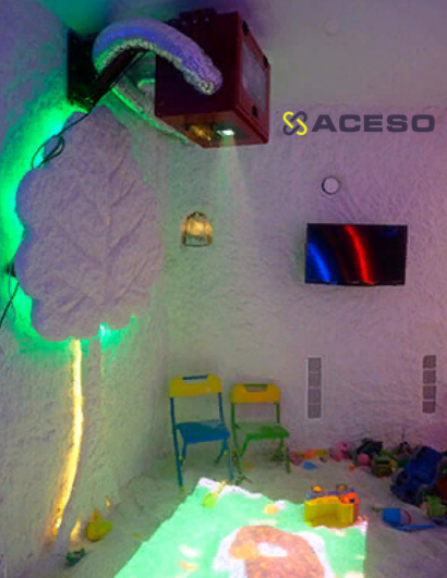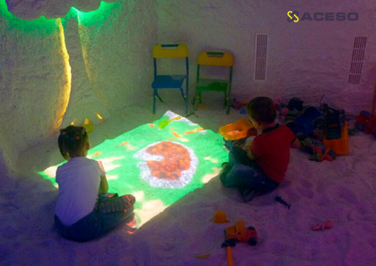 Интерактивный комплекс iSandBOX Salt — модель интерактивной песочницы разработанная специально для соляных комнат и пещер. Герметичный корпус, который необходимо подключать к системе проточной вентиляции, защищает встроенное оборудование от солевых отложений. Вместо песка для такой песочницы используется сыпучая соль, которой в обычной солевой комнате предостаточно.