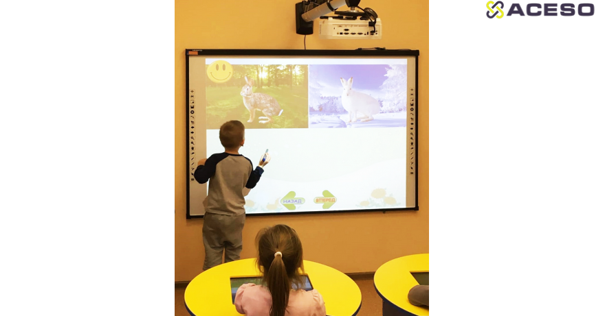 Отдельно стоит отметить компактность интерактивного класса. Благодаря скромным размерам и мобильности интерактивных парт, интерактивному классу из 3-4 парт не нужно отдельно помещение. Классу найдется место в самом маленьком уголке группы детского сада или класса начальной школы.