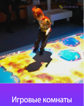 Другими словами, оборудование превращает поверхность пола в большой интерактивный экран. На экране отображается игровой мир, с которым ребенок может взаимодействует в режиме реального времени.