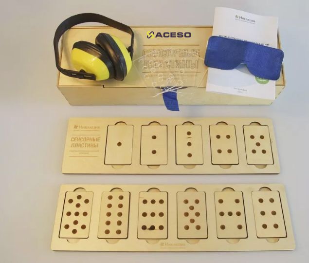- Набор методических материалов "Сенсорные пластины" - направлен на развитие тактильного восприятия и различения с усложнением в виде когнитивной нагрузки (счет, выстраивание числовых последовательностей). Рекомендован для индивидуальной работы с детьми от 5 лет. Комплект предполагает проведение упражнений, как при полном сенсорном контроле, так и при условно-изолированном тактильном канале. В этом случае, когнитивная нагрузка создает условия для так называемых осмысленных тактильных упражнений.
