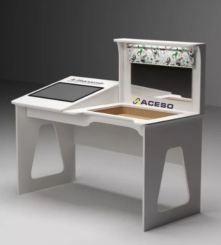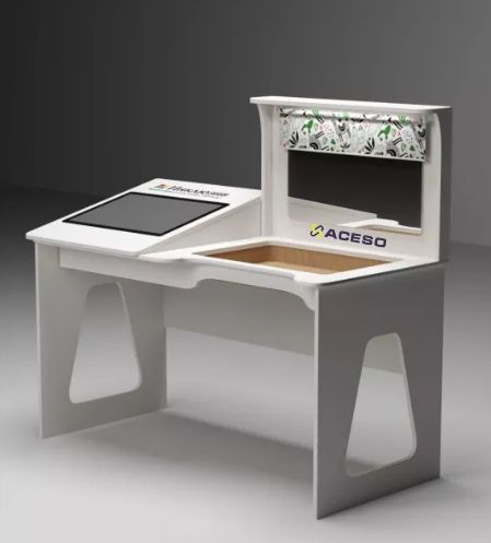 Первый вариант стола имеет высоту 55 см и предназначен для использования в детских садах. Он адаптирован к росту и возможностям маленьких детей, что позволяет им комфортно работать с интерактивными материалами.