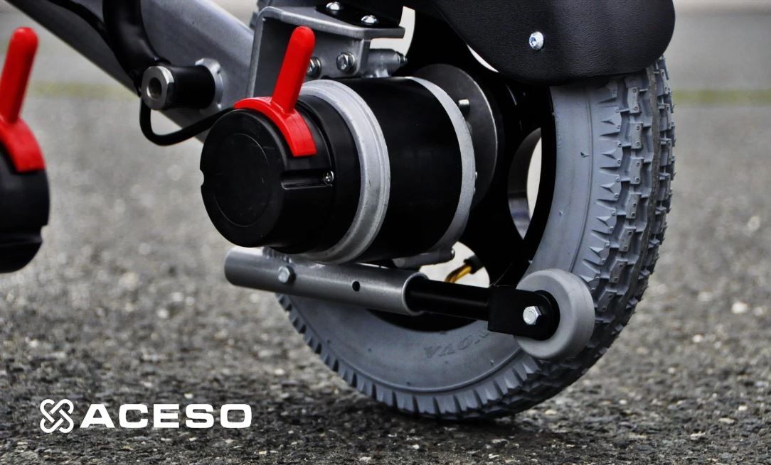 Мощные электромоторы позволяют ей преодолевать пандусы с углом наклона в 13 градусов самостоятельно без сопровождающего и в 27 градусов при помощи ассистента-сопровождающего, перемещаться по неглубоким песчаным поверхностям и твердой земляной поверхности или газонам.