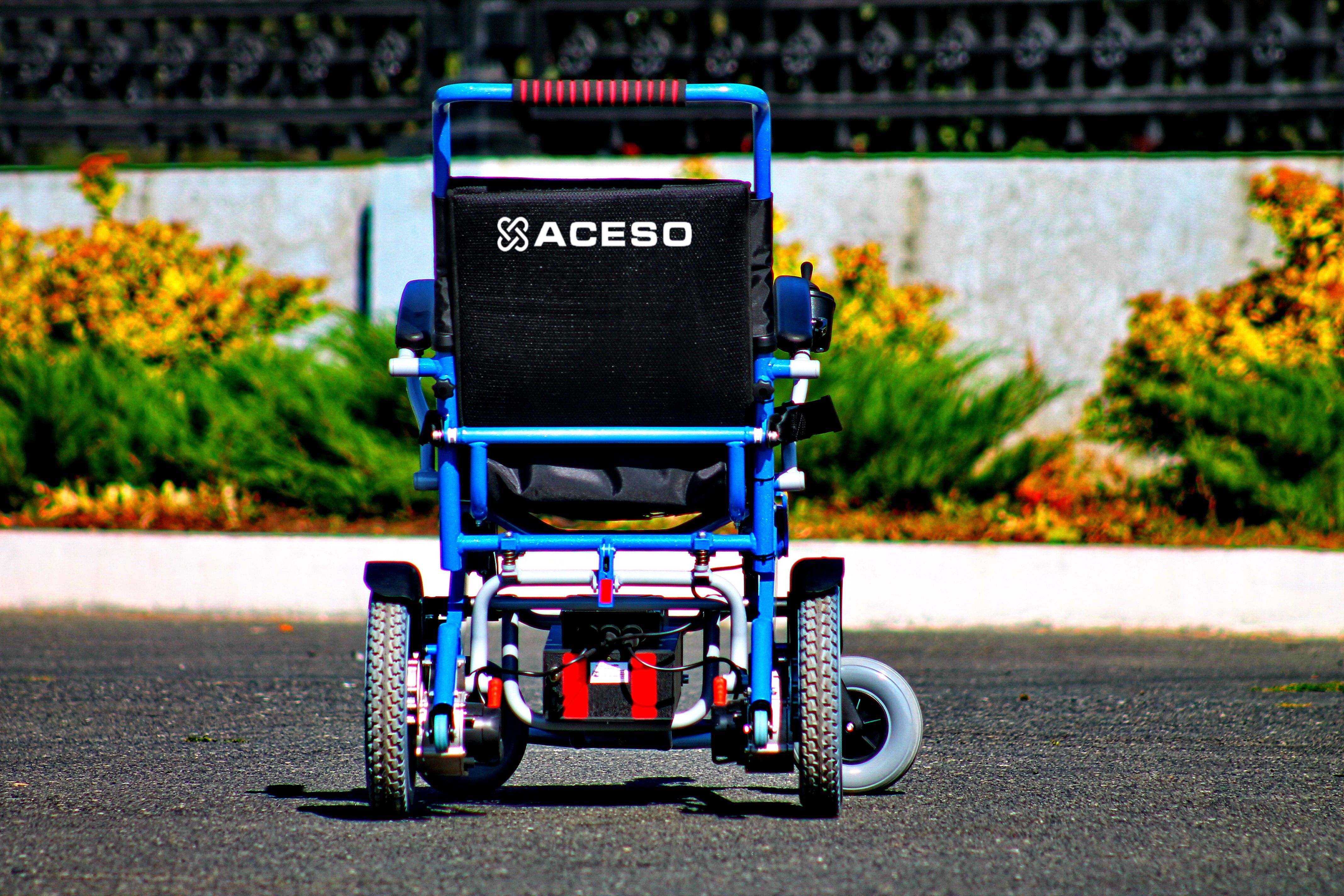 - Вес коляски 38 кг (с 2 свинцово-кислотными АКБ 18 Ач, съемными регулируемыми стальными подножками);