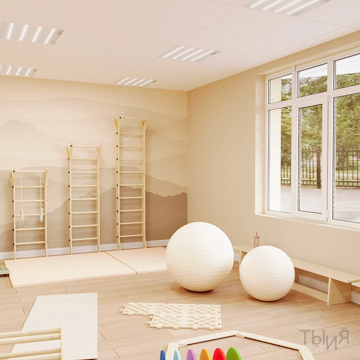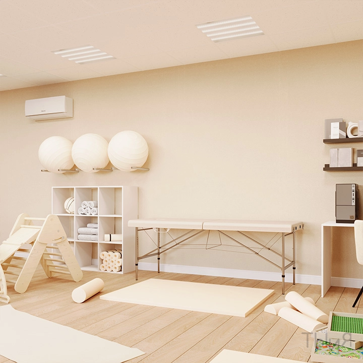 - Эстетика пространства: светлые тона, натуральные материалы и функциональность создают современную и уютную ЛФК-среду.