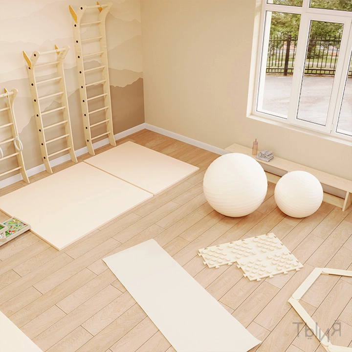 Многофункциональный комплекс для ЛФК и сенсорной интеграции, сочетающий физическое, когнитивное и сенсорное развитие ребенка в одном эстетичном и безопасном пространстве.
