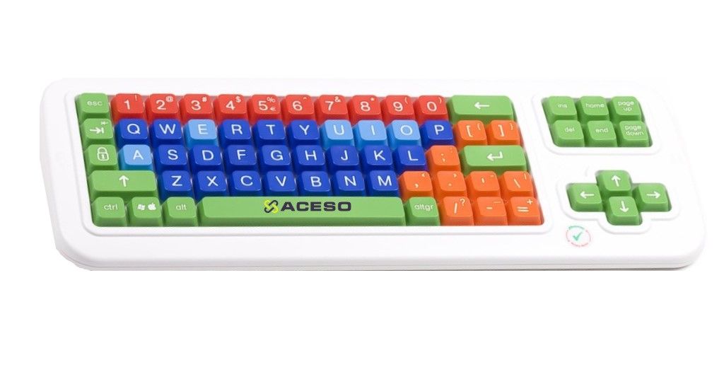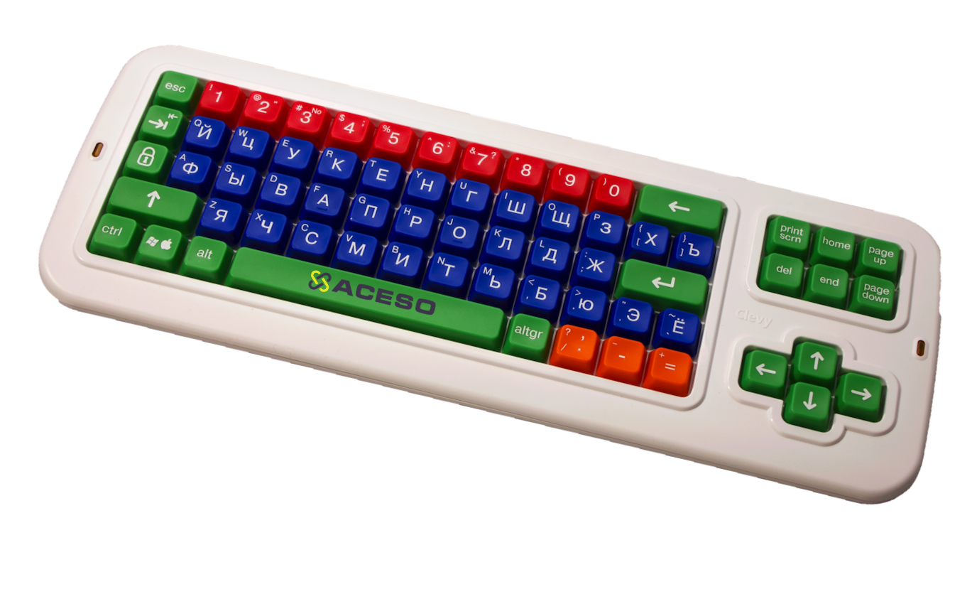 Разноцветные клавиши представляют разные функциональные области и делают клавиатуру интересной для детей.
