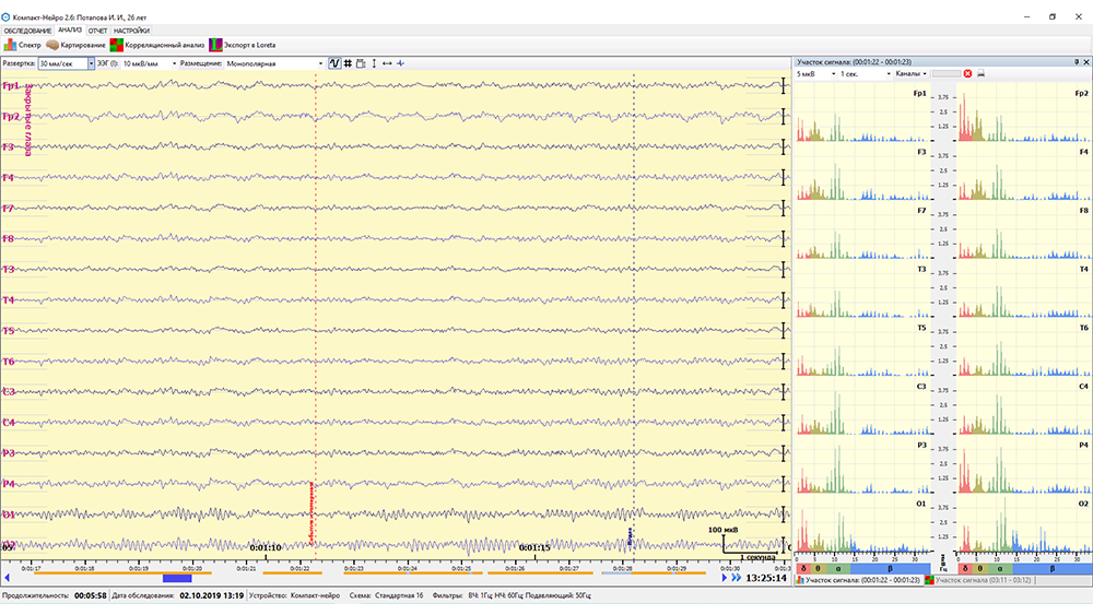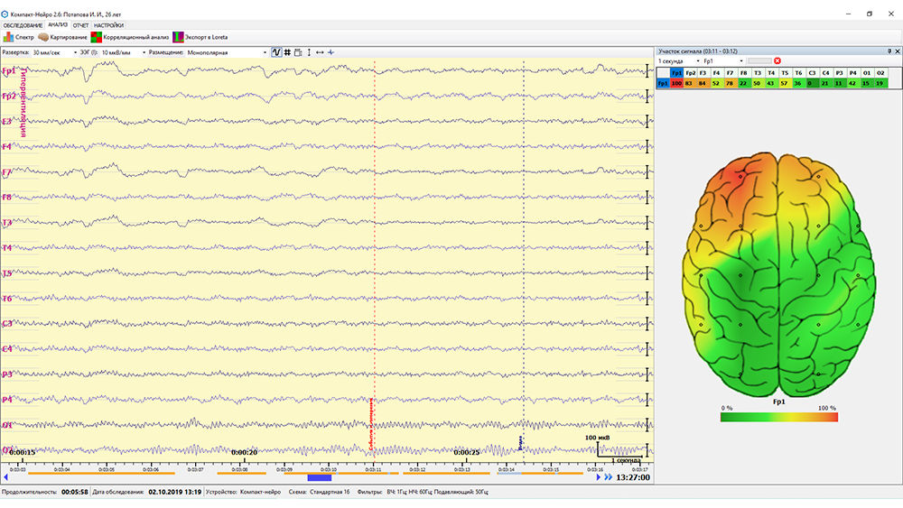- автоматический поиск и выделение артефактов на ЭЭГ-сигнале;