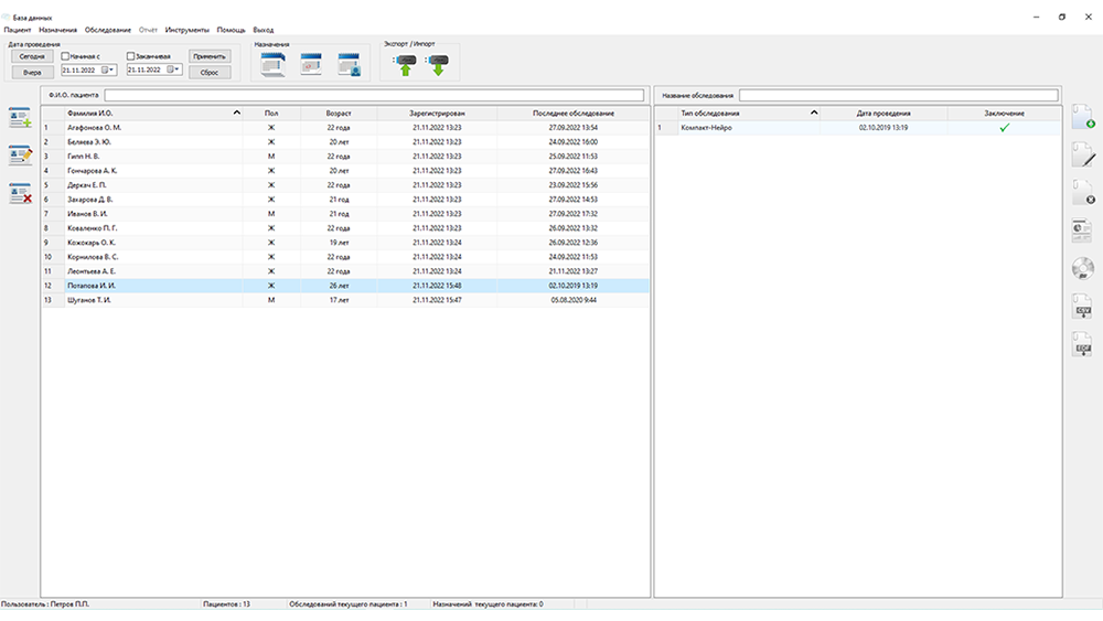 - импорт/экспорт проведенных ЭЭГ-обследований;