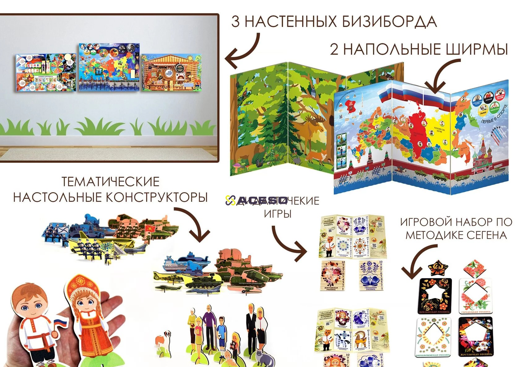 1. Бизиборд (дидактическая панель) настенный "Россия-гордость моя". Серия: Патриотическое воспитание (из 2 панелей)