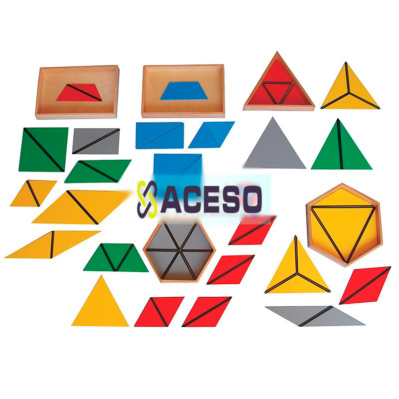Малый шестиугольный ящик – ребенок узнает, что правильный шестиугольник можно построить из двух трапеций, шести равносторонних треугольников, шестки равнобедренных тупоугольных треугольников или из трех ромбов.