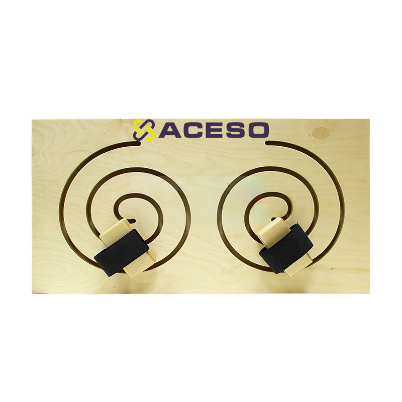 Ребенок надевает крепления либо на руки, либо на ноги, и проводит рукой или ногой от начала до конца лабиринта.