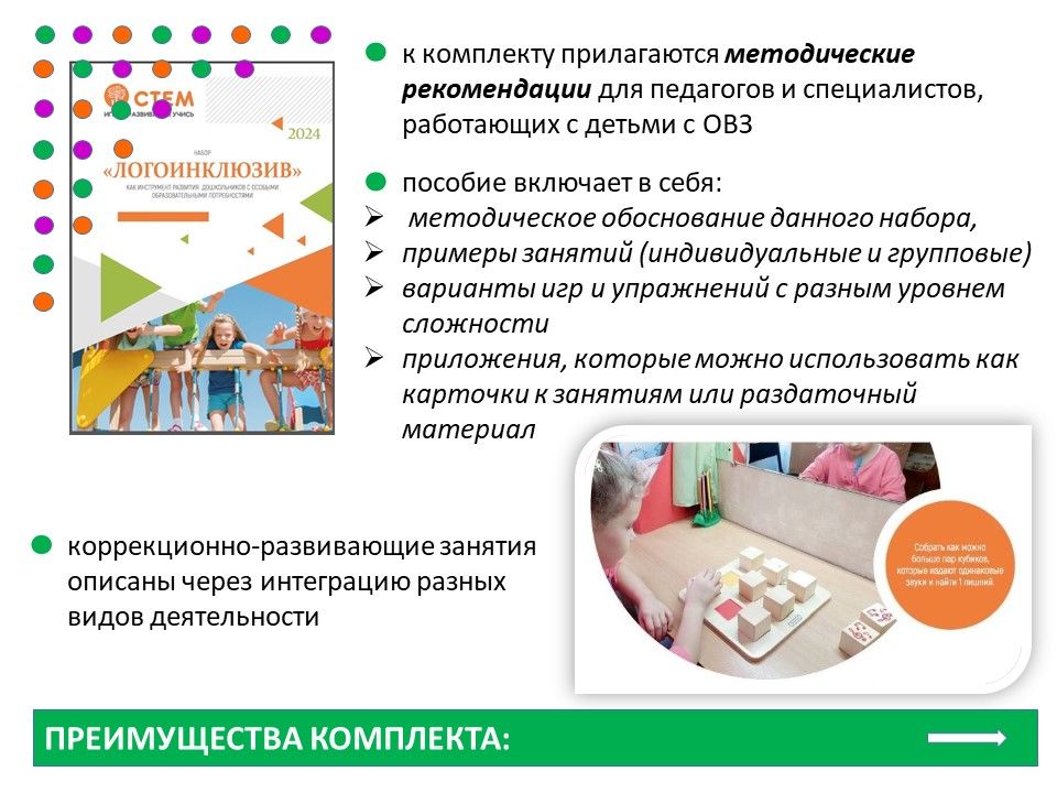 Образовательный набор «ЛогоИнклюзив – позволяет создать оптимальные условия для полноценного познавательного и речевого развития, способствует легкому усвоению информации, а занятия проходят интересно и с удовольствием.