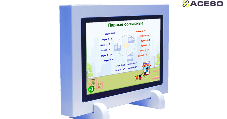Качество оборудования подтверждено международным сертификатом менеджмента качества ISO 9001:2015. Логопедический комплекс «Домик Антошки» оснащается большим антивандальным сенсорным монитором, который не сможет повредить ребенок.