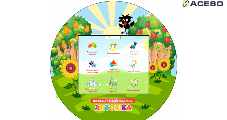 Коррекционный комплекс «Домик Антошки» поставляется с игровыми заданиями (более 450) различного уровня сложности, программой речевой диагностики, «говорящим зеркалом», с возможностью загрузки любых других программ, видео и аудио материалов, установки любых приложений, совместимых с Windows.