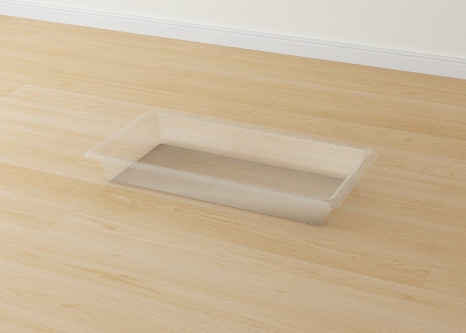 Лоток прямоугольной формы, выполненный из прозрачного пластика, размером 110 х 57 х 13 см.
