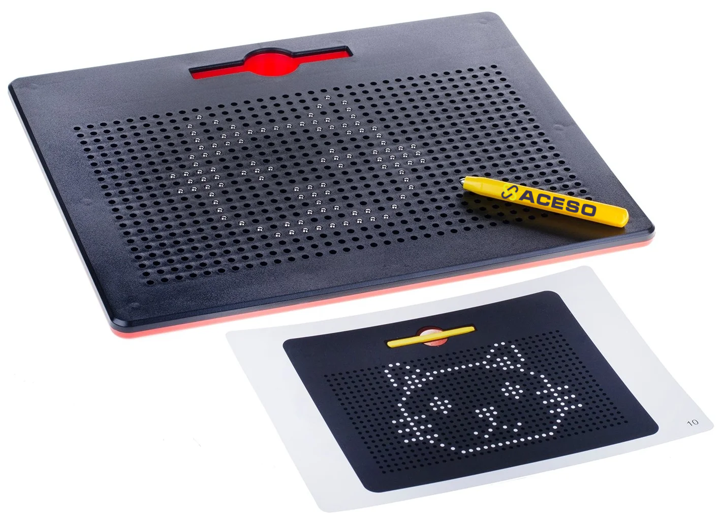 Магнитный планшет - это игровой планшет, который состоит из 714 металлических шариков и стержня с магнитом. Как только стержень подносится близко к шарику, шарик вылезает на поверхность, множество шариков создают изображение, таким образом ребенок может создавать картины пообразцу или по своему воображению. Если при рисовании возникла ошибка, ничего страшного, шарики можно протолкнуть обратно и продолжить рисовать.