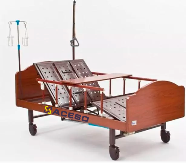 Функция переворачивания пациента - С помощью вращения специальных винтовых рычагов поднимаются сегменты спинной и тазобедренных секций и можно переворачивать пациента без особых усилий. Переворачивание рекомендуется проводить во избежание возникновения нарушения кровообращения и пролежней, а также для облегчения ухода и мытья пациента.