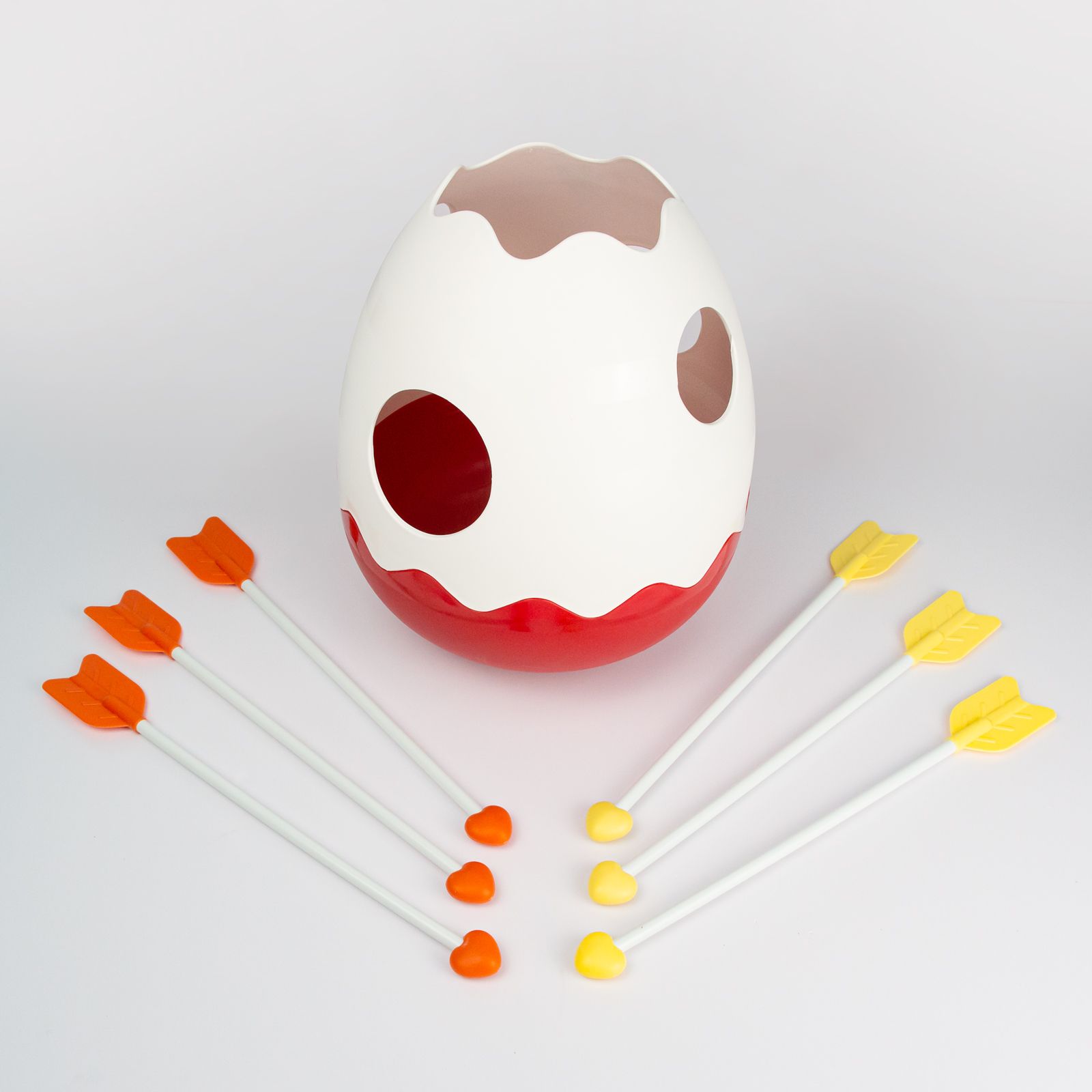 Игровой набор для метания, представлен в виде яйца и стрел. Цель игры: набрать большее количество очков, метая стрелы в лунки яйца. Каждой лунке присваивается балл в зависимости от уровня сложности. Яйцо в процессе игры можно раскачивать или вращать для увеличения сложности.