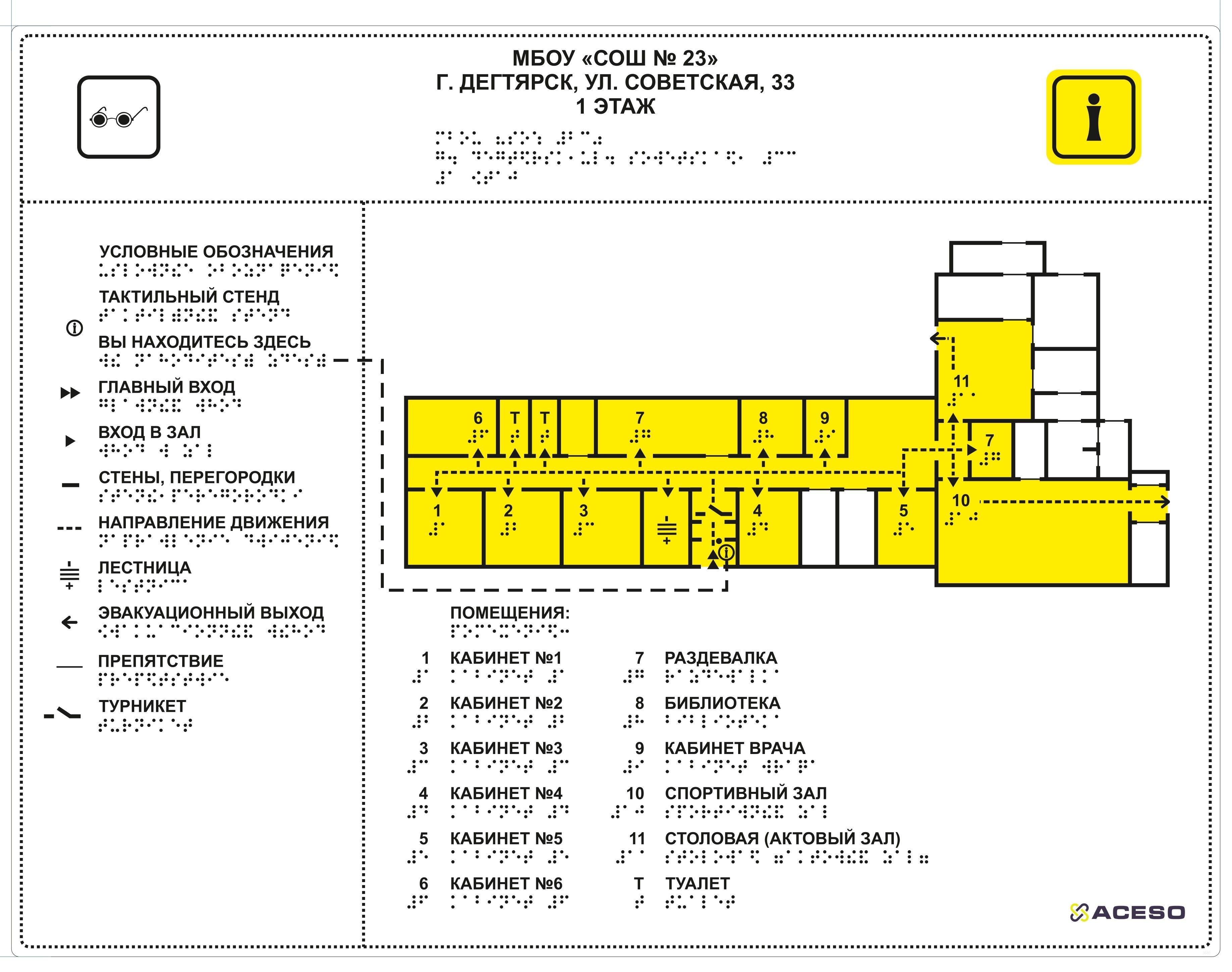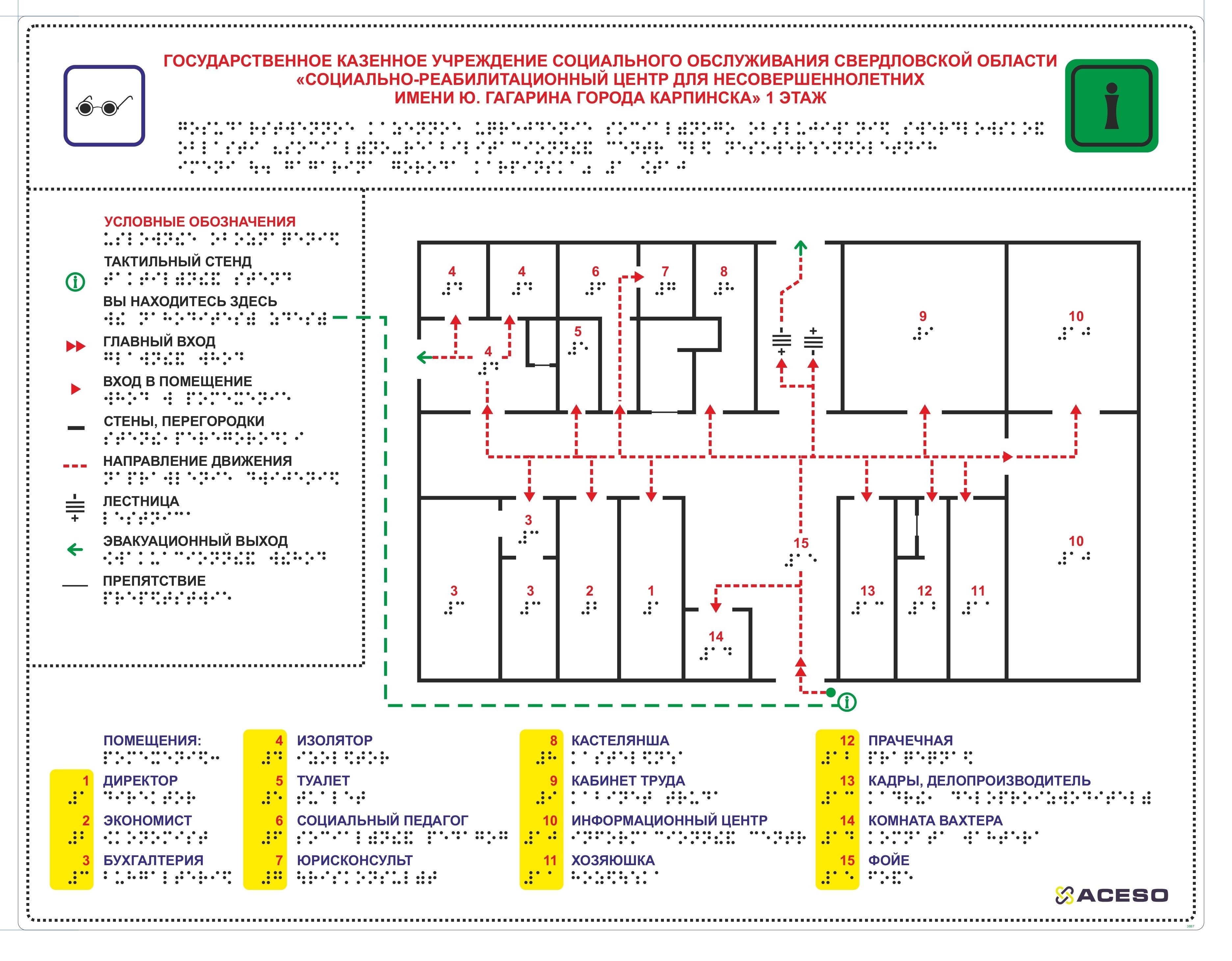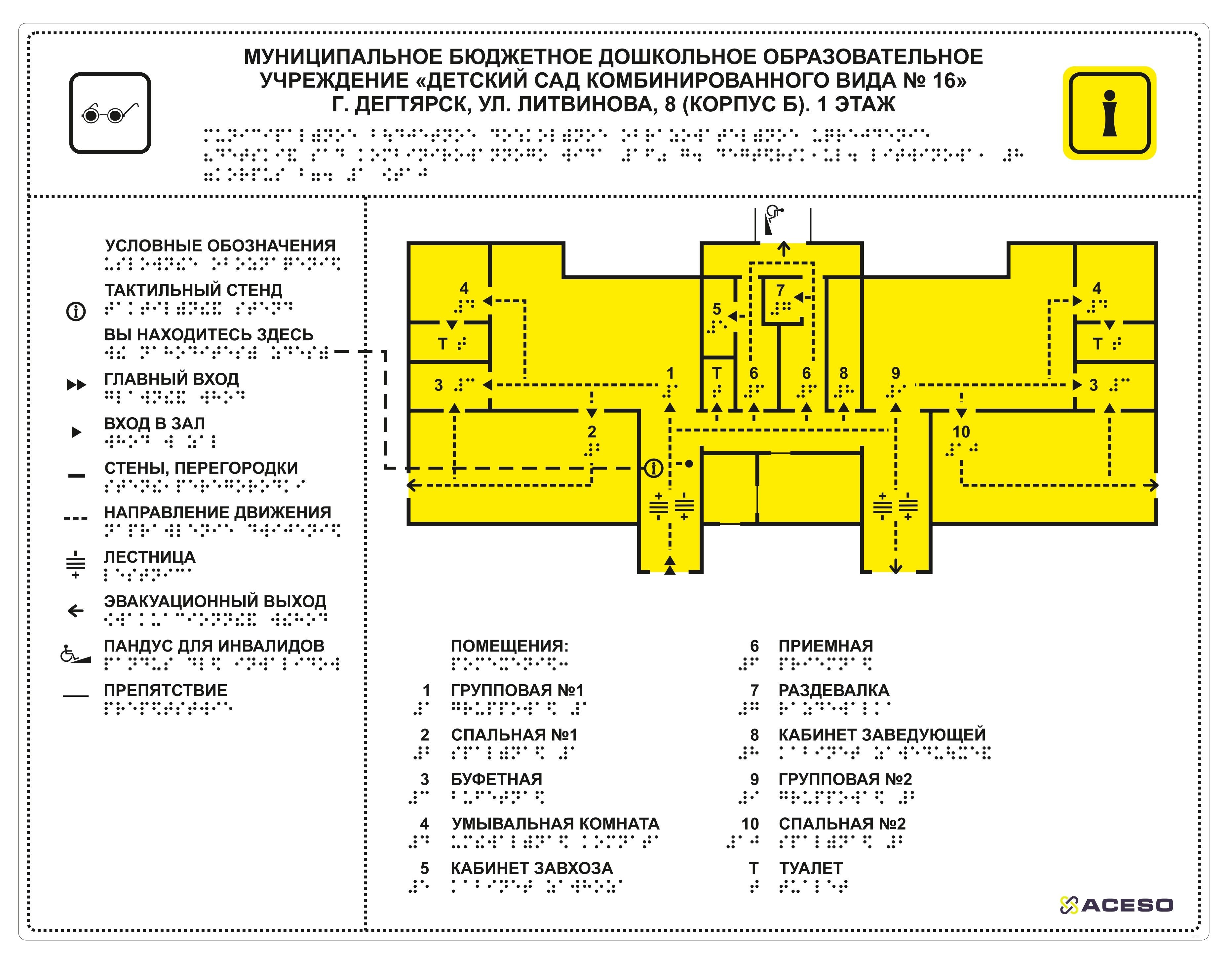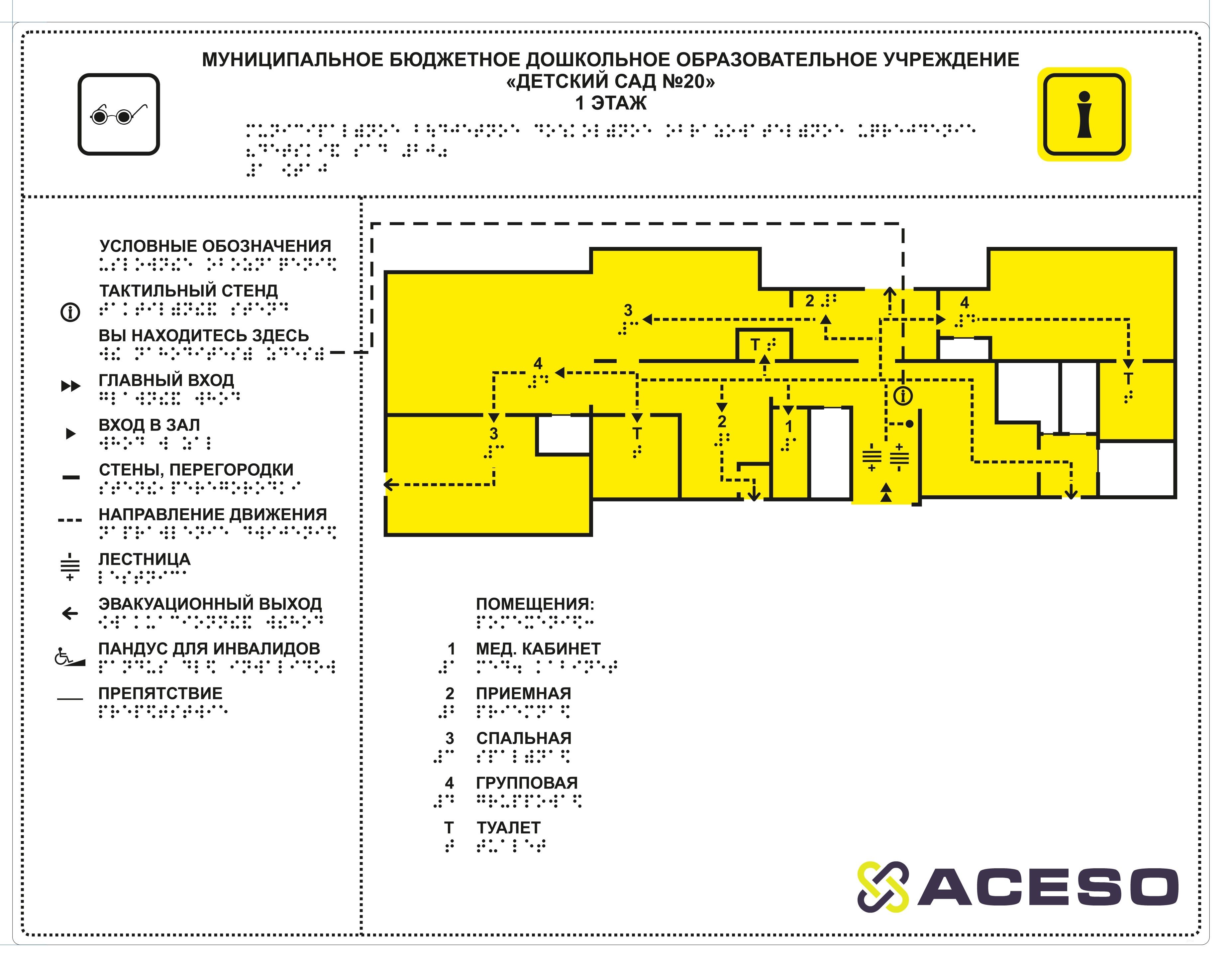 Мнемосхема — это индивидуальное изделие, которое изготавливается под помещение заказчика. Пока схема не будет согласованна заказчиком она не печатается. Схема должна быть на каждом этаже куда посетитель с потерей зрения будет иметь доступ.