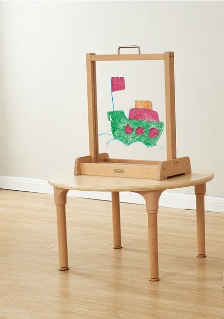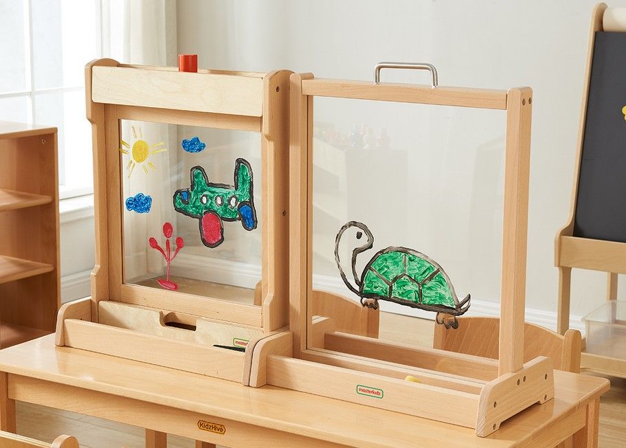 Поверхность для рисования сделана из прозрачного акрила, поэтому дети могут рисовать то, что видят сквозь него, в том числе портреты друг друга. После завершения работы рисунки можно просто стереть, чтобы использовать мольберт в следующий раз.