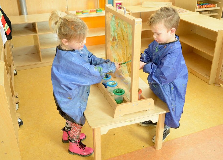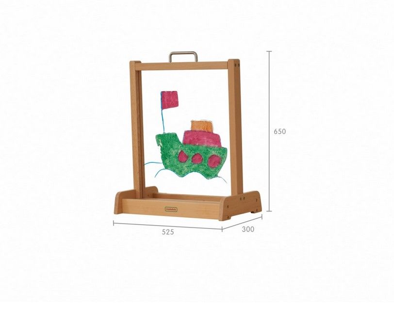Двусторонний настольный мольберт – идеальный инструмент для юных художников. Изготовлен из массива бука с акриловой поверхностью для рисования. Имеются выемки для красок и кистей, а также ручка для переноски. Дети могут рисовать красками, маркерами или создавать портреты друг друга, стирая рисунки после завершения работы. Размеры: 53х30х65 см.