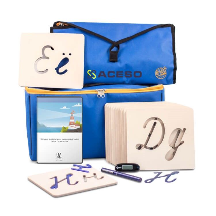 Набор включает планшеты с фактурными оттисками букв, тактильное изучение которых также помогает формированию зрительно-сенсорного образа буквы, а это особенно важно на этапе развития навыков письменной речи как профилактика её нарушений в будущем.