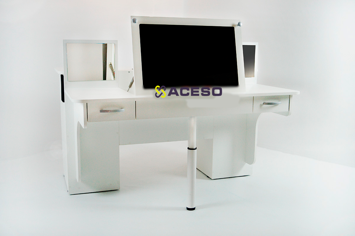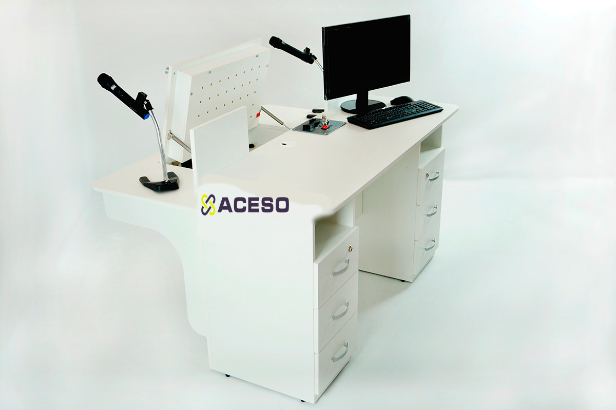 Модуль педагога представляет собой комбинированное рабочее место (с системой вывода изображения на монитор 21.5”), оснащенное выдвижными ящиками, которые позволяют удобно разместить дидактические и методические материалы. Модуль учащегося оснащен встроенной интерактивной системой вывода изображения 23,6” с подъемным механизмом, обеспечивающим плавное поднятие системы. Модуль учащегося может быть использован двумя учениками одновременно.