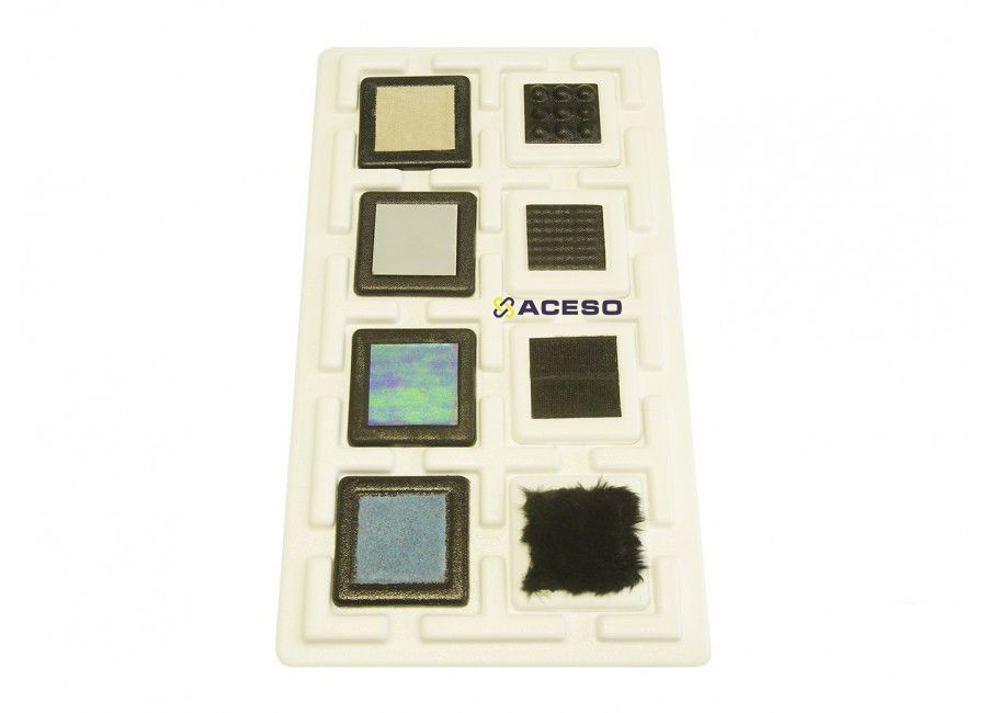 Набор для выявления и развития сенсомоторных навыков у ребенка. Данный набор состоит из планшета-основы, 8 сменными тактильными пластинами с различными материалами (мягкий, гладкий, шершавый, шороховатый,длинный мягкий ворс, жесткий мелкий ворс, мелкофактурная твердая поверхность, крупнофактурная твердая поверхность). Работа с набором помогает учителю и ребенку в процессе занятий выработать методы по исправлению сенсорной дисфункции с пассивной или осязательной системой. Развивает основные навыки: сенсорное восприятие, тактильные навыки.