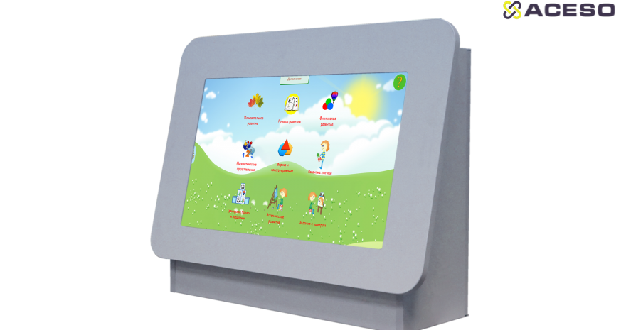 Логопедический комплекс «Лого МИР» оснащается большим антивандальным сенсорным монитором, который не сможет повредить ребенок.