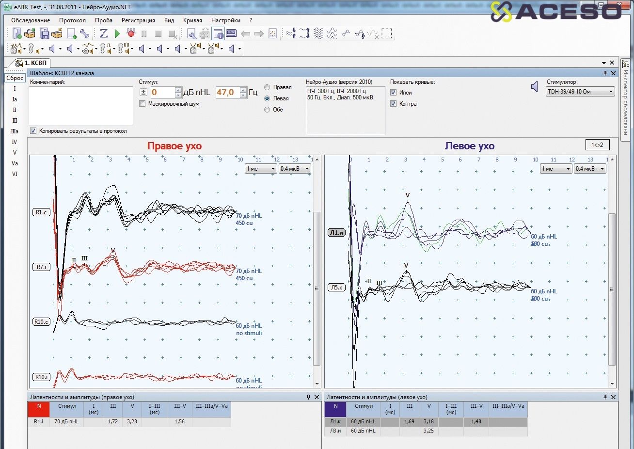 Современный интерфейс, мощная база данных, настраиваемые нормативные значения, высокое качество записи и воспроизводимые результаты позволяют решать любые ваши повседневные задачи с исключительной точностью. Множество встроенных шаблонов тестов помогут легко начать работать с программой. А гибкость их настройки даст возможность подстроить ее под ваши нужды. Благодаря этому «Нейро-Аудио» может одинаково легко использоваться как в клинике, так и в исследовательском институте.