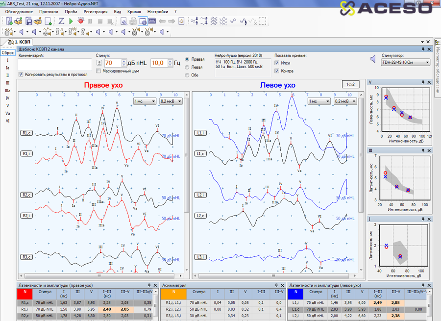 Современный интерфейс, мощная база данных, настраиваемые нормативные значения, высокое качество записи и воспроизводимые результаты позволяют решать любые ваши повседневные задачи с исключительной точностью. Множество встроенных шаблонов тестов помогут легко начать работать с программой. А гибкость их настройки даст возможность подстроить ее под ваши нужды. Благодаря этому «Нейро-Аудио/СВП» может одинаково легко использоваться как в клинике, так и в исследовательском институте.