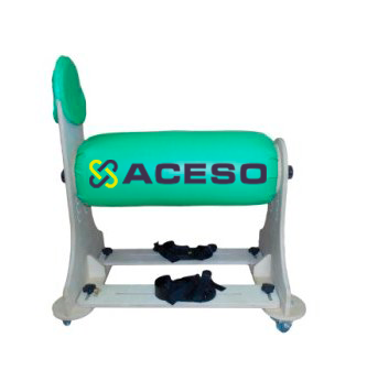 Сидение опоры выполнено в виде абдукционного валика, регулируемого по высоте и углу наклона. Валик крепится к двум вертикальным стойкам при помощи винтов-барашков с пластиковой рукояткой. Вертикальные стойки оборудованы самоориентирующимися колесами со стояночным тормозом. Одна из вертикальных стоек оборудована съемной подушкой для спины. На вертикальных стойках установлены съемные подножки для крепления стоп с возможностью независимой регулировки "влево-вправо". На съемных подножках располагаются съемные пластиковые крепления для ступней типа «сандалии», с задними упорами и крепежными ремешками. Крепления для ступней независимо друг от друга регулируются по плоскости подножки "вперед-назад" с возможностью закрепления в выбранном положении.